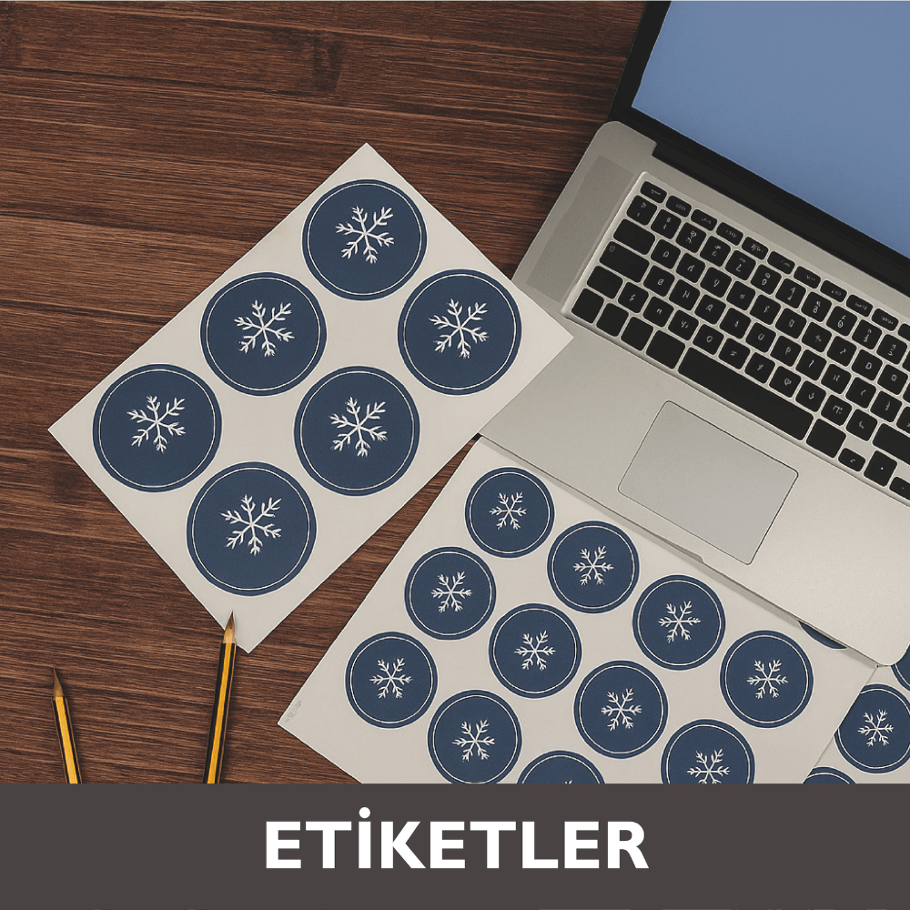 Etiketler, ürünlerinize profesyonel bir görünüm kazandırırken markanızı tanıtmanın en etkili yollarından biridir. Farklı boyut, malzeme ve tasarım seçenekleriyle her sektöre uygun çözümler sunar. Ürün ambalajlarında, kutularda, şişelerde veya promosyon ürünlerinde kullanılabilir.